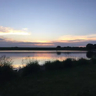 What a lovely place for a run or stroll! Despite the heat, there were so many people out enjoying the lake. People were fishing--both from the dock/shore and in small boats. People were picnicking, running, walking their dogs, and more! We didn't quite go all the way around the lake, but it's supposed to be just over two miles. We came for the sunset, which was lovely!