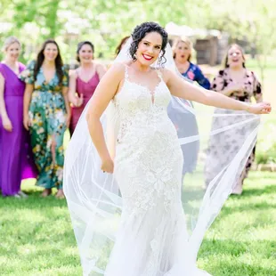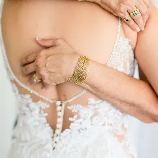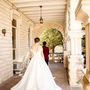 She did the Bustle here- connecting my long train to my dress for easier walking!