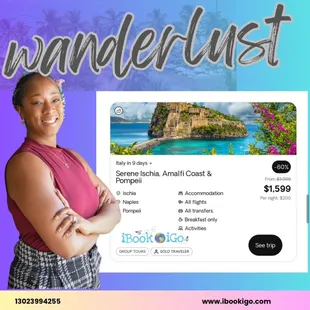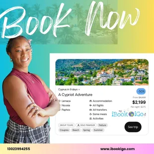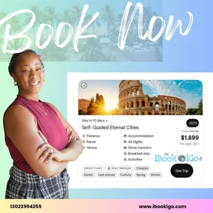 I have never used a travel agent before, afraid if I wasn't ready to book I'd get a guilt trip or trapped into a trip I wasn't ready for. This was not the case; INSTANTLY Precious- my travel agent, assured me she LOVES her job and the best part is coming up with trip itineraries for people and us booking is a bonus. I got the information QUICK for my initial trip, but the dates changed so I asked for a new quote for a later time. And I booked! I went! I can't wait to go on my next trip this year. I didn't know I could afford TWO TRIPS, but the travel deals Precious got me was a BOGO! Can't wait to sail out for my next trip! Thank you Precious !