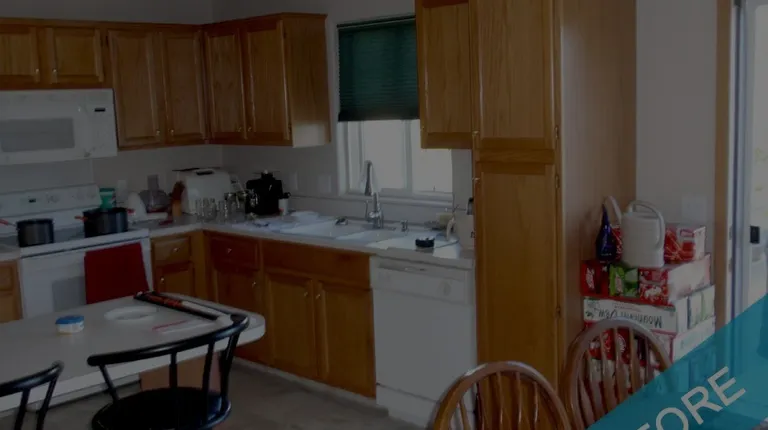 before and after photos of a kitchen