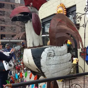 I attended a wedding in Omaha, NE and had some free time to explore the downtown area. This shop, with it's eye popping outdoor display was my favorite! The metal items are made from recycled materials - I bought a 10' chicken with a massive body made from a junk car hood and brought it back to WI to display at my diner where we serve chicken - could not buy just one! Took home a flock of 5 in different sizes - the gal working in the shop was so pleasant and helpful - she even phoned the owner for me to ask if I could get a discount - which he kindly said yes to. The prices of these recycled treasures are surprisingly low - each piece stands alone as a work of art - and let me tell you how much fun the drive back to WI was with a pick up truck bed full of huge and colorful chickens! Don't miss this shop while in Omaha - I WILL be back someday to get more awesome "artwork" for my outdoor dining patio.