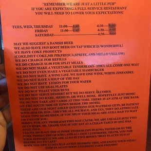 Funny Display sign showing the hours.