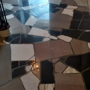 a tile floor in a bathroom