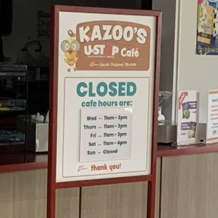 My kids and I visited this museum a few month ago and really liked it. We went for a special ice cream making event. The kids loved it so much we got a membership for Christmas. However the days they're open and closed are odd. Why are they closed Monday and Tuesday? They also do not allow outside food or drinks in. This would be okay IF they actually had their little cafe open more than 2/5 days they're open! These 2 days happen to only be Saturday and Sunday. They claim there are drinks and snacks in the gift shop but we scoped it out when we visited last and didn't see anything other than trinkets and apparel. I get that there are needed rules but if you're NOT going to have your snack stop open everyday you're operating or have your gift shop adequately stocked and easily noticeable then you need to make exceptions. At the very least allow an empty water bottle that can be filled at a drink station or manufacturer sealed water bottles. It's already roughly $14 per person who is walking (so basically 18 months) up to a senior. They could take the hit over water a basic necessity.
