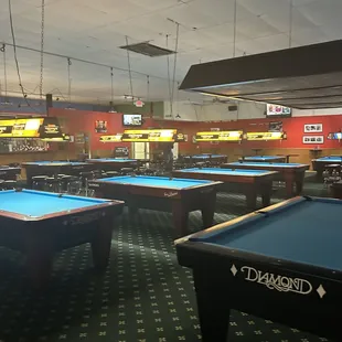Came here on a Friday night. This place is ok for pool and bowling. They have lots of tables. We played pool for about 2 hours and paid around $25. I would not recommend the food from here. We ordered the "munchie platter" and literally got a plate with 7 pieces of fried things in it. Description said it was "a heaping pile of your favorites". More empty spaces on the plate instead of food. Then I got the fries and chilli on it. How can you screw up fries right? Well my stomach started feeling weird after eating, And my cousin had the runs that night. So eat at your own risk. But the quality of The food should be better.