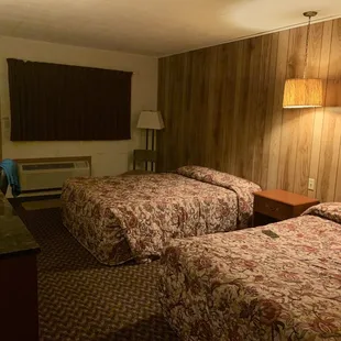Stayed at Green Acres during a road trip with the hubs. It was a welcomed place to sleep instead of staying in the car.Honestly, I'm not sure of the "defined" difference between a hotel and motel. So, I am going off my own preconceived notion that motels are usually more run down and you can't expect the same conveniences that a hotel would have. When we called ahead a very friendly woman answered. She informed us that all rooms were the same with two beds and non-smoking. The room was a throw back to the 80s or early 90s with wood paneled walls, hanging light fixtures and laminate flooring. There was a somewhat bad odor that you get with most older buildings. While there was no shampoo or conditioner provided, there was face and body soap along with clean towels. In the morning coffee is provided, no breakfast (this is what I would expect from a motel).Overall, if this was a hotel I would rate it 2 stars, but, because this is a motel it got a one star boost.If I am ever back in Red Cloud, or around it, I will definitely have no problems staying at Green Acres again.Happy sleeping Yelpers!