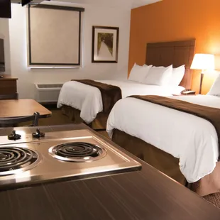Very kind and helpful staff. Clean rooms with nice bedding and towels. Very accommodating when I needed to change my resorvation to handicapped accessible. However, please know they have stoves and fridges, however they do not provide a pan or any thing else. These items may only be purchased. A pan was 18 dollars at the desk. Also I had requested to pay cash for my room and was told that that would be fine, instead however my credit card was charged with out my knowing. When I was checking out I was told that it was "all taken care of". I was rather surprised.