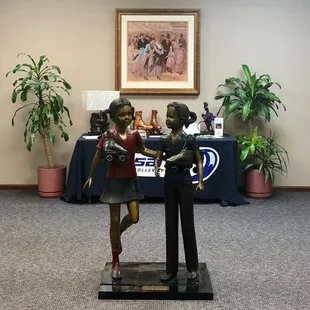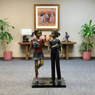 Statues of children in the office area
