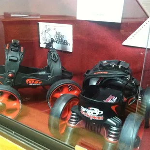 For those who read my reviews you know that I have a passion to locate and report on odd little museums. Well this sure qualifies it's not large but it is comprehensive about the history of skates and skating. Imagine being able two sea skates from 1814. Well I didn't even know they were skating in 1814 and today that's over 200 years old. wow! now the rest of the museum has various skates, over time, motorized skates, four wheel skates, inline skates, and skates that defy description as people just wanted to have a good time and go skating. I would think you needed skating because not everybody had ice year-round to do ice skating. But what do I know! Anyway, there skate competitions around the country, there were the days of the roller rinks, and all the wonderful things of the past, there were these designs that increase safety and speed there's just a whole lot to see here, if you stop and read, and a great calliope box that you need quarters for. So bring some quarters and come and enjoy the skating Museum. I thought it was wonderful.