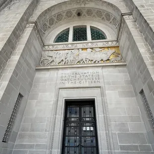 Closed and locked up for the holiday but I was still able to walk the grounds of the impressive Nebraska Capitol building.At 400 feet, it is the second tallest of it's 50 peers after Louisiana at 450 feet. The tower is completely functional with 15 stories that contain various state offices. There is also an observation level on the 14th floor which I would love to have visited (for my "Getting High" album) but was closed today.Other facts... when it was built, it was the tallest building in Nebraska. It is now third after two buildings in Omaha. The man on top of the tower is The Sower, he is casting the seeds of life to the winds. Construction of the Lincoln tower began in 1922 and completed in 1932.Lincoln is the 31st State Capitol I have visited![Review 11375 overall, 1152 of 2019.]