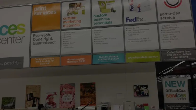 Great location, and decent prices/selection for a office supply store. Be sure you sign up for rewards and you often get a $10 off coupon printed out when you buy stuff so watch for that. What I really like about this store is that if I need to print out a bunch of files, like lets say 200 copies of a flyer, I can email the flyer in advance to them at [email protected] and attach the file, then ask them to print it in black and white, color, on card stock, or whatever. Then when I stop in later that day, or week, it is finished and I don't have to wait. Very nice feature.