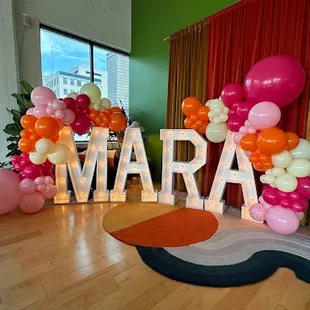 Marquee letters and balloon garland