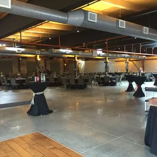 This is a pretty neat event space, that is basically a blank slate for you to decorate however you please.It's very open and airy - with almost an industrial feel in the wooden beams and concrete floors.I attended/was a bridesmaid at a wedding here, and everything went off without a hitch.The dance floor is large, there's lot of space to walk around and mingle even if you're not dancing, and the bathrooms were nice and clean (which isn't the case at most big events).I could see this being a good option for a wedding, reunion, corporate event, or anything you might need a large event space/rental for.