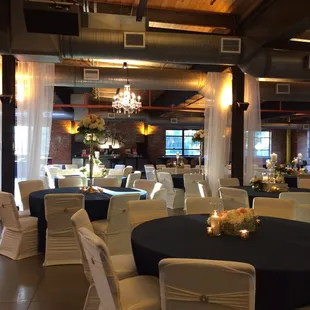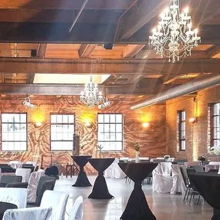 Great lofty space for hosting something like a company event or a wedding. I would estimate it seats about 150-200, and there is a bar, stage, and lighting provided. For the wedding I attended the space was used very well. A Photo booth tucked in one corner, lots of space between the tables, and a good amount of room for dancing and stuff on the stage as well. The other side of the room had a buffet and a bar which was not cramped at all. Check out their Facebook page- this is likely an underrated event space that's not on everyone's radar due to location since it is off the beaten path but the lofted open ceilings and brick walls are so beautiful.
