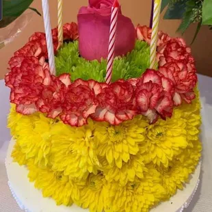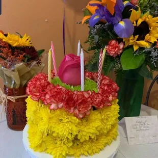 I helped my father order an arrangement for his girlfriend's birthday and it arrived looking like it was put together by a child. It was lopsided, very sloppily put together and not made in the right colors. We contacted 1-800-flowers to complain and this florist was supposed to do a new arrangement but never did. We had to request a refund from 1-800-Flowers. I contacted the florist themselves to voice my complaints and find out why a new arrangement wasn't delivered and I received poor customer service as well. I will never again do business with this florist.The pink one is what we ordered, the yellow one is what was received.