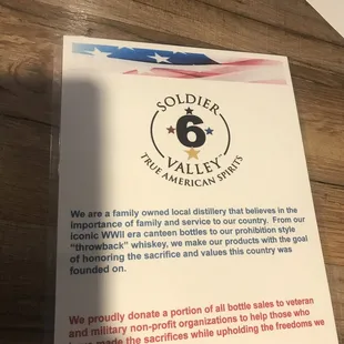 I learned about this place via a Deal of the Day offer. The deal included a tour, two cocktails, and a fifth of whisky for 2 for $40, no way I could turn that down.The distillary is a small operation that can hold maybe 50 to 75 patrons and is located in an industrial park. We went on an Tuesday afternoon so there were only a few customers there and only 5 o us on the tour. We were greeted by a very friendly bartender that checked us in and gave us ou tokens for the drinks, tour and whisky. They have a menu of 24 whiskey/ vokda cocktails. The cocktails were of average quality.The tour was interesting. The guide was very knowledgable about the history of the distillary and the art of making spirts. we learned that although Patriach Distillers was founded in 2012, the owner started making thier Burbon around 2005, which means it is a very smooth and flavorable burbon. Thier Soldier Valley product line consists of a whisky, rye, vodka and a 12yr burbon.I have used the whiskey in both mixed drinks and on the rocks and it is a fine experience both ways.