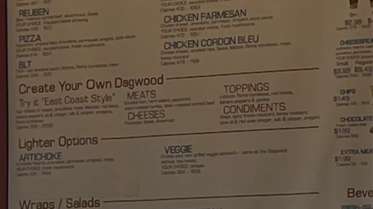 a menu for a fast food restaurant