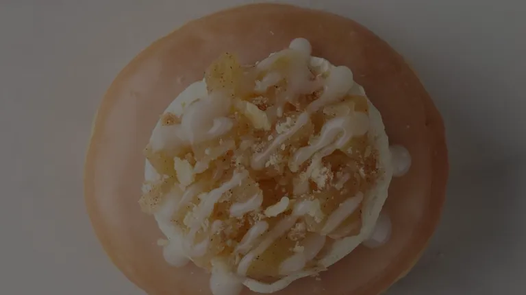 Salted Caramel Crème Doughnut - Glazed doughnut topped with vanilla glaze, roasted almonds and caramel sauce.
