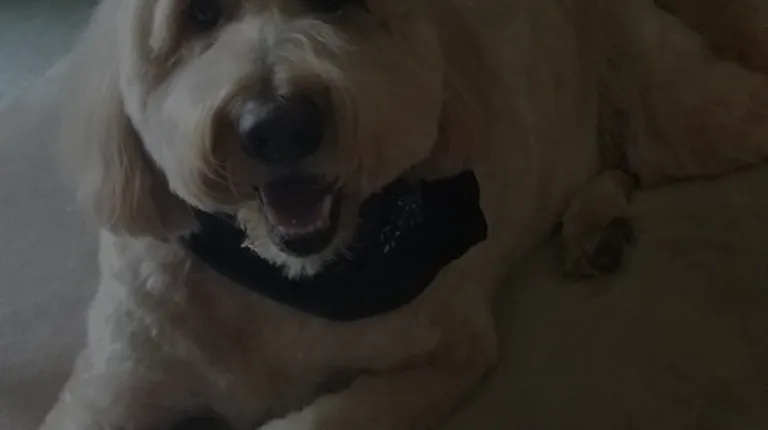 Clumsy dog "bumped" into a chalk mural (on purpose in my opinion) right after grooming!! We love Audrey's though.