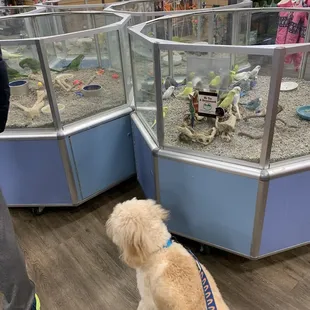 We had so much fun here walking around seeing all the animals and pets! We stopped in to buy some pig ears and dog biscuits for a friends house party. There's a good selection of dog treats here. Look for their specialty decorated dog treats at the counter! I first noticed the pretty colorful birds and large tortoise turtles! They're amazing to see. This is a nice place to pet shop for any of your animals supplies or if you're looking for a new pet to buy!