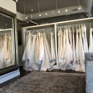 I was 100% dissatisfied with my experience here. I had a few of my family members with me and we were all turned off by the customer service. We were not allowed to look around for dresses ourselves which was a big disappointment! She asked for my Pinterest pictures but then wouldn't let us look around at all on our own or expand outside of those styles. The employee who helped us didn't offer much help, she had a bad attitude, and she didn't seem excited to work with a bride who WAS willing to purchase, she seemed annoyed that we were there. The store itself was freezing cold and the couches we had to sit on had a terrible musty smell. They made us take our shoes off at the door, so we had to use the restrooms with no shoes, yuck! The whole experience really was terrible. The employee really shouldn't be in the wedding businesses trying to make bride's happy. I would suggest taking a look at how you plan for the appointment. Allow the brides and their family to look around and have fun at their appointment instead of making everyone feel like they couldn't move off of their spot on the couch. Please allow the appointment more time and a more relaxed experience.