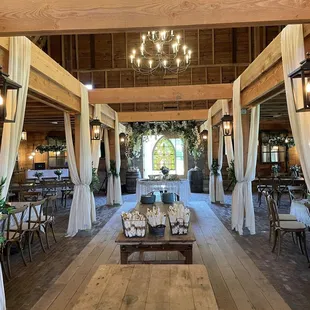 Will start with positives- cute barn set up, lots of outdoor space and photo opportunities Negatives- horrible parking options and the person directing cars was not only rude but not clear on where to go. From parking area it's very difficult to get inside barn or the outdoor area. Steps currently under construction but that would've been a first to do before opening site. While sitting outside we got a horrible whiff of sewage. I think the septic needed cleaned out as the vents were right near the north side of barn. Outside bar area doesn't have much for seating unless it's a backless bar stool or sitting in an Adirondack chair near a fire pit. Honestly the chairs are rustic and cool but didn't want to sit in the blazing sun nor have clothes snagged. Could have added more seating or canopy type shade to help with sun. Inside arrangement of tables is limited and you need to be aware as support poles do inhibit views and photo opportunities. Dance floor is small again depending on # of guests etc. I'd also ask about other bookings before and after yours to ensure you are not rushed for set up or tear down. Has potential but lots more detail work and improvements in attitudes to make it a place for brides and grooms. Ask questions and get in writing!