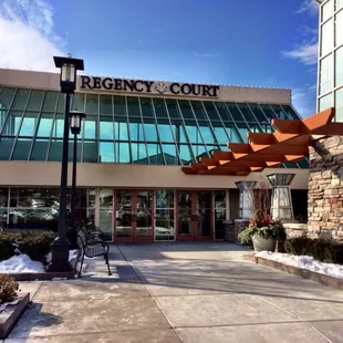 I love Regency Court! It is a small, luxurious shopping center with great stores. This is your place for a less chaotic shopping experience :) My favorites are Kinaara for Indian food, Dry Bar for blowouts, Lovesace for the best couches ever, Borhseims for jewelry and gifts, Loft or Anthropologie for stylish clothes. There's plenty of parking. Bathrooms towards the back between Pottery Barn Kids and Borsheims. Lots of live pants in the mall.