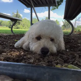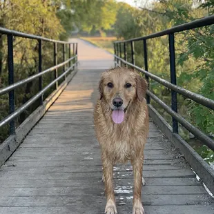 This surely is the most beautiful dog park I've ever been to. Lots of seating and shade for old folks; lots of trees and water for dogs. Charming trails and bridges. The dogs were all friendly and well-behaved, though a bit damp. I have a 10 pound poodle but we didn't go to the small dog park because nobody was there. But he had no problems with the Goldens and Labs we met up with. We'll be back!