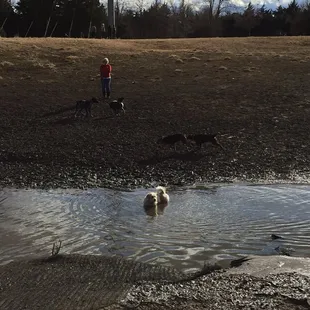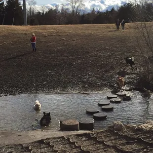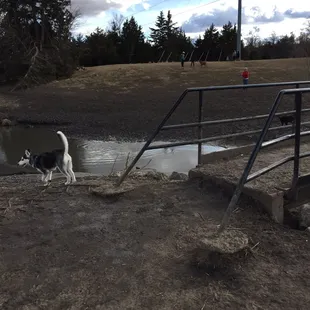 Great dog park! Lots of room for the dogs to run and to walk around. Well maintained. Pups had a blast! There is a creek that runs through the middle for swimming. There is a main concrete path that seemed accessible for all and then some smaller trail paths.