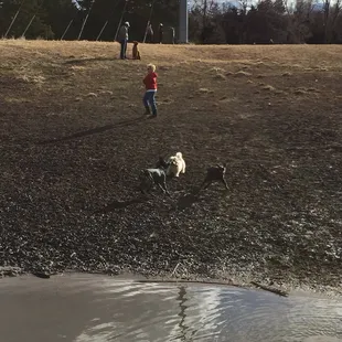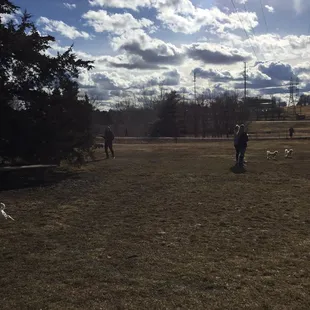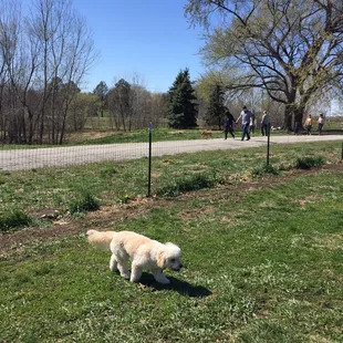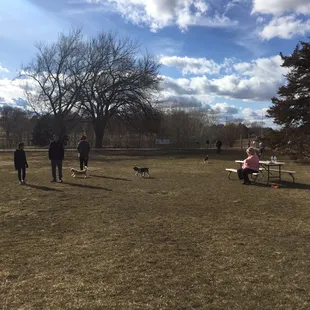 Beautiful dog run, kept very clean. Hills & trees & a stream for the big dogs, a tidy nicely mowed area and with a new circular sidewalk for the small dogs. Picnic tables & doggie bag stations.