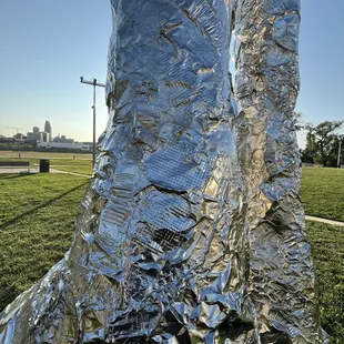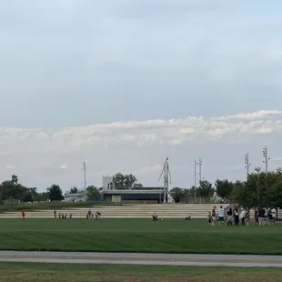 This park is located on the Iowa end of the Bob Kerrey Pedestrian Bridge, along the Missouri River and across from Lewis and Clark Landing. Its official name is Tom Hanafan River's Edge Park. It is a spectacular park that has a walking trail, a restroom facility, a large YMCA field, a patio area, an amphitheater, picnic tables, and a playground.The park spans a whopping 90-acres and was opened in June 2013. The 5-acre field is huge and was be occupied by little kids' flag football teams that were practicing. It is well maintained and has picnic tables, among the small trees, running along the side of it. The field can be beautifuly illuminated at night with colorful LEDsThe park is home to a couple of distinct public art pieces. The first one is by the playground and restrooms. It is a towering 33 foot tall aluminum foil man sculpture. It is hard to miss and can be see from across the river. You will find the other piece right off of the river. it it a tall, bright red kinetic sculpture, which is also hard to miss. This park actually has its own private parking lot, which is nice. The restroom facility is large and has a water fountain. The playground is small, but nice. It is on a rubbery mat surface and has a hammock, a huge pelican jungle gym with a slide. You will see a couple of benches and a few umbrellas around the area for caregivers to take advantage of while their littles play.The park's trails are very nice and well defined. It is interconnected to 40 miles of recreational trails that can be used by walkers, runners, and cyclists alike. Given the park's amphitheater and open layout, it is perfect for special events such as concerts, festivals, speeches and fairs.This park is well maintained and you can get some amazing views of the Missouri River, Omaha shore, and Kerrey Pedestrian Bridge. This is an awesome park that has a real chill vibe. I enjoyed my time here and 100 sure that you will too.
