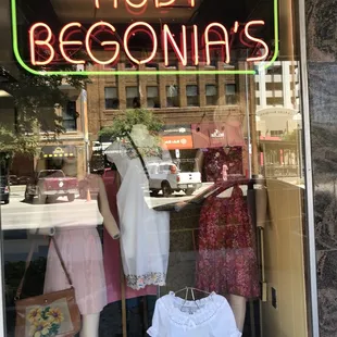 I haven't lived in Lincoln for 20 years, but I usually hit Ruby Begonia's if I get downtown at all.The storefront looks tiny, but there's a fairly sizable downstairs that extends a lot further than the first floor. On the first floor they feature earrings, sunglasses, wigs, and a couple of clothes. Downstairs they have a selection of hats, gloves, and men's and women's clothes/coats/shoes, with a smattering of robes and slips. Clothes and even shoes are grouped by size, and they have dressing rooms. They do rentals too. I am a fan of vintage hats and gloves and have made several happy finds here, which have been very reasonably priced (most of the hats run $8-$15).The place is now the only vintage store in Lincoln, so if you do vintage, you owe it to yourself to come here.