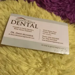 These guys are fantastic. I have been going to Shadow ridge dental for a few years now, and they are excellent. I know it may sound crazy, but I now actually look forward to my dental appts! It feels more like a spa than a dental exam. Not only do i get to watch TV while getting my teeth taken care of, but the staff is amazing. Britni, Lori, Linda, and Kathy are true professionals - and also make it fun! They send me text reminders and always keep things on time - they are always running on time! Dr. Becker is fantastic - and this team is why my entire family (wife, kids, in-laws, cousins) use Shadow Ridge Dental. I recommend them to anyone who values professionalism, integrity, and friendliness!