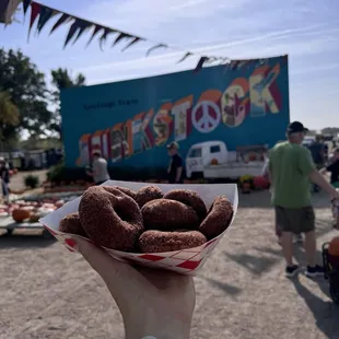 I came to the farm the weekend after Junkstock to take advantage of their free admission and discounted mums and plants. I don't typically end up buying anything as Junkstock (besides drinks from Rowdys bar). So this was actually neat because you can still see the INCREDIBLE vignettes of Junkstock.So, that said, it's a very shrunken scene. You can peruse the entrance for any plant you want. I came on a mission for some mums and left with 2 for $18! Great deal. Then of course, when in rome, you have to get the apple cider donuts. It was really busy which was great and parking was very easy. You can bring your own cart to haul pumpkins, grass, mums, and much more. But really just getting to look at all the cool structures for free is worth the drive alone.