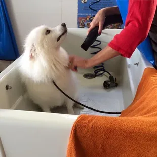 The staff was so friendly and helpful. They have absolutely everything you need to wash your dog including stuff to clean their ears and teeth and different spritz's for after the bath. The walk around tubs make it so easy to wash and dry your dog and the tub raises up to the level that is perfect for your height!