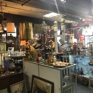 Service was a pleasant older man who was so very nice...helped me with several items in cabinets I wanted to try on and look at..plugged in some lights for me to make sure they worked...so many unique items and antiques ...priced moderately and very worth it for sure....a couple items we want to go home and see where we could put them before buying them! Nice quaint and quiet atmosphere ..definitely will be back.