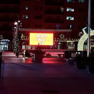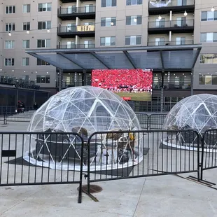 I've been to a couple of Nebraska football games here to watch on the big screen. Love the big screen! Nice that they have tables sitting around or you can bring your own lawn chair and sit. Just wish they had a better choice of food and drink during the game. Not a huge fan of the places that they have which is very limited and recently went to watch an 11:00 AM game. KETV had a segment the Friday before on their Welcome to the Weekend segment stating that the game once again would be on the big screen with many tables and even heaters at the tables which was certainly intriguing as it was supposed to be quite chilly for the first few hours. My friends and I arrived 30 minutes before the game to find not one table. They had all been stored away already and the igloos that you can rent had taken the place of all the tables. Security that was working there had no knowledge of any advertisement for the game so I was thankful we brought our lawn chairs which was kind of a bummer to eat in without a table. Not one heater in sight. Ended up getting a slice of pizza from the only place that was open down there which would not have been my first choice. Next time I will try to remember there is a new Kum and Go in the District which I could've went and got a cheaper slice of pizza from and perhaps enjoyed even more! Super poor planning.