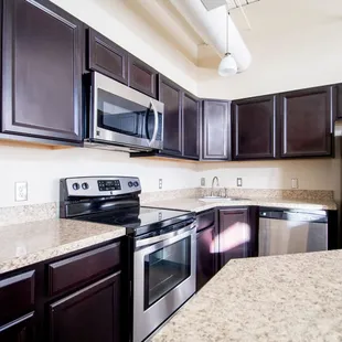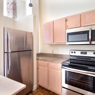 Largest wall of my apartment is covered in visible drywall seams. Some of my maintenance requests have taken 3+ weeks for important features like main room lighting (need ladder to reach), water leaks from upstairs apartment into our walls, and dishwasher repair. It seems like the only way to get things fixed is to pester the employees, which isn't fun. We were told we were getting new appliances before we moved in 2 years ago; that never happened. The only wheelchair-accessible entrance was blocked off for longer than a month (thank goodness no one needed it). If you live here, you can expect 1 or both of the elevators to go out probably once a month. The stairwell is dimly lit w/ trash and broken lighting on the stairs at some points.