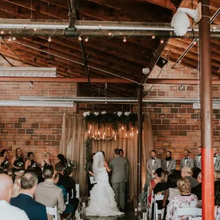 Cozy event space perfect as a backdrop for a wedding or event. Industrial vibes but still welcoming with a little dressing up with the decor. I think they can fit around 150 in here, with tables and a dance floor. Lots of parking is also a huge plus!