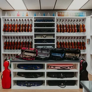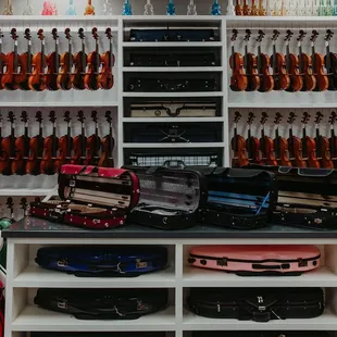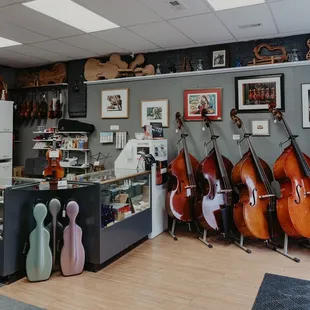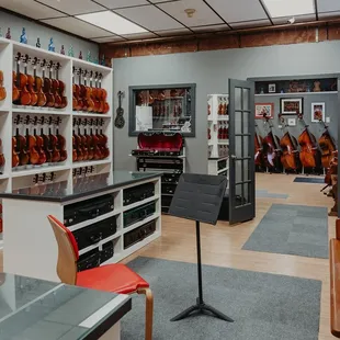 I've been coming here ever since I started playing the cello in fifth grade. Always a nice selection of strings, rosin, stands, whatever you need. They carry all of the Suzuki books and a lot of duets, holiday music, etc. They do repairs in shop. They have a nice selection of used violins, violas, cellos and usually a bass or two.