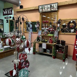 This place is a hidden gem! If you have a wine lover you're shopping for, take a look! Great and fun selection of whimsical wine glasses and wines. I was actually on the hunt for a Christmas tree and stopped by on a whim. The selection of Christmas trees was a little sparse but I expected that, getting a tree so late in the season. I still did find a great one which they netted and helped tie to the car. The store itself was absolutely adorable with an extensive selection of beautiful garden tchotchkes. The thing I absolutely loved was different sections showcasing locally made products. There is a wine section for local wineries and a selection of local beers. Also, drink while you shop! There was also a section with various limbs from trees to buy for DIY wreaths. There was a complimentary basket of DIY ornaments for the kids and I have to say, Karen was extremely pleasant and helpful. It was overall a great experience. Recommend