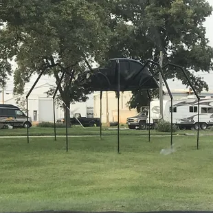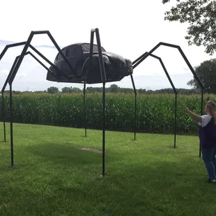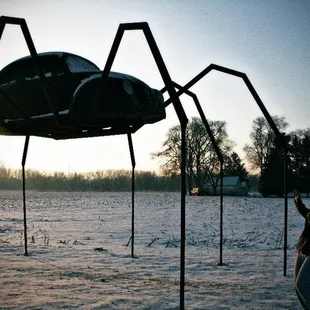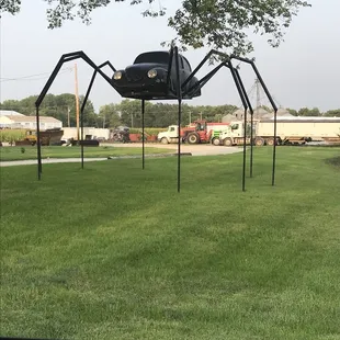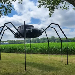 VW beetle made into a spider in the yard of someone in Avoca Iowa