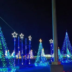This review is for the event Santa's Rockin Lights that is held at werner park over the holidays. The entrance is not well labeled or easy to find. But once you find it, the process is straightforward and convenient. You basically just drive through the display, which is set up in the parking lot. We enjoyed how the lights were very in sync with the music for a good chunk of the time. It make for a more dynamic show. The music was a good variety of popular holiday songs.