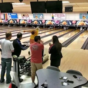 Great place to bowl with great people! The staff is friendly and the establishment is clean. Not only is the bowling experience great the bar food and drinks are actually pretty good.