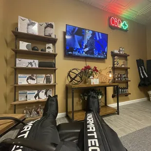 So far I've tried two services... By far my favorite was the leg compression therapy! I have severe restless leg syndrome and very rarely do I get a full nights sleep. The day I did this compression therapy I slept so peacefully... And my legs did not hurt when I woke up the next morning. Whoooo! Can't wait to go back!
