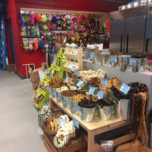 As others have said, this is a great local pet store option. The shop is a little small but well-appointed, and they have a variety of bakery treats as well as other packaged ones. I loved their pastry case full of doggie desserts. They look good enough to eat...but I'm sure they taste better to our pups. I also saw that they have a self wash station. It was being used when I was there so I couldn't take a look at it but from what I hear it isn't a 360° access tub like the green spot has. Still, because it's much closer to me and only $15, I will probably give it a shot. I also noticed that they sell high quality dog toys. Our favorite brand of toys is West Paw, and they sell lots of those. They're just really well-made and last a long time, even with our enthusiastic chewer. It seems like they put a lot of thought into all the products that they stock.The location isn't great. You can't see it from Maple Street and if you weren't looking for it you wouldn't find it. I live nearby and have been in this strip mall before and still didn't notice it.