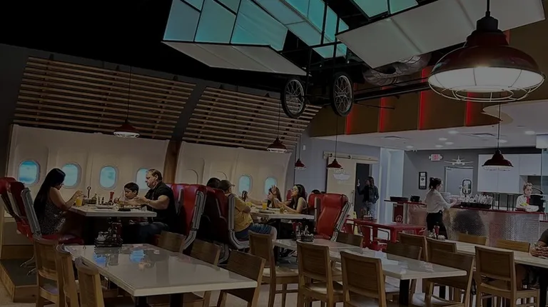 We called in advance and the man told us they don't open till 6 but we got there and they were open. The waiter was not able to give decent suggestions, we went based on reviews The food was ok. For the smaller pizzas the middle of the dough was not cookedThe airplane seat are uncomfortable but cool, there is a sharpe edge on the arm of the seat that ripped my sorts Over all it was okay it was costly and I don't feel the quality is there.