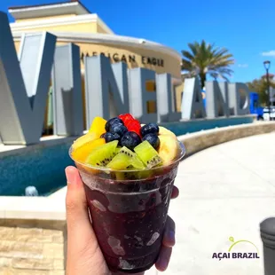 This was a great little spot - surprised that no one has reviewed it before! It is right outside an outdoor outlet mall, but there is almost no foot traffic in this area. There is also plenty of outdoor seating available, and there was no line!We both ordered the #7 and loved it - the portion sizes were generous (though the small and large are quite similar - I'd recommend just sticking with the small). The fruit was chopped right in front of us and the açaí was refreshing and very cold. I'd definitely recommend it, especially as a refreshing treat on a warm sunny day!