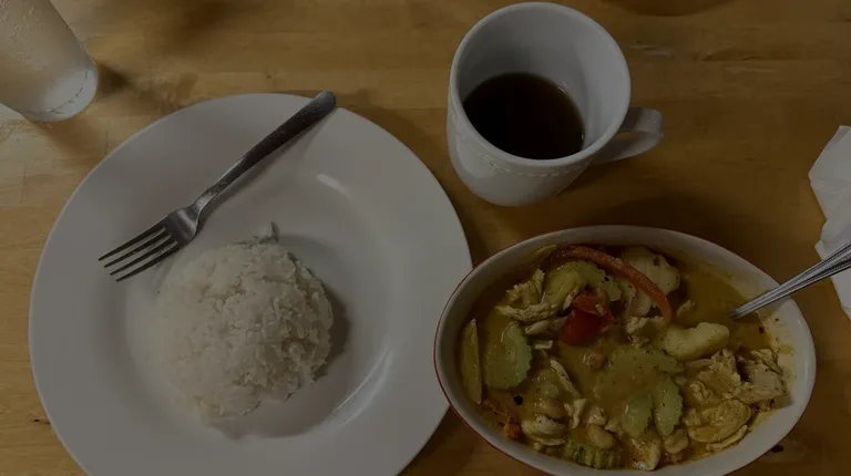 Thai Fried Rice, Yellow Curry, and Thai iced Tea