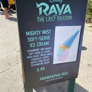 Got the Mighty Mist Sundae in celebration of Raya and the Last Dragon! It's a strawberry and vanilla swirl topped with a waffle coat coated in white chocolate and sugar lol! Get ready for a sugar high lol! I couldn't finish the cone but enjoyed the ice cream! Definitely worth it because it was hot and humid!!